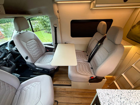 LED progammable mood lighting, extensive 240v plugs and USB sockets throughout the camper, reading lights above both beds give the van a luxurious feel.